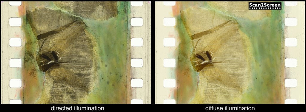 At last year’s AMIA Conference in Milwaukee, we demonstrated our technology by scanning Ursula Helfer’s stunning hand-painted direct animation LUKAS KLEINE WELTMASCHINE. The difference between directed and diffuse illumination was striking, with collimated lighting revealing additional details and enhancing the final rendering.