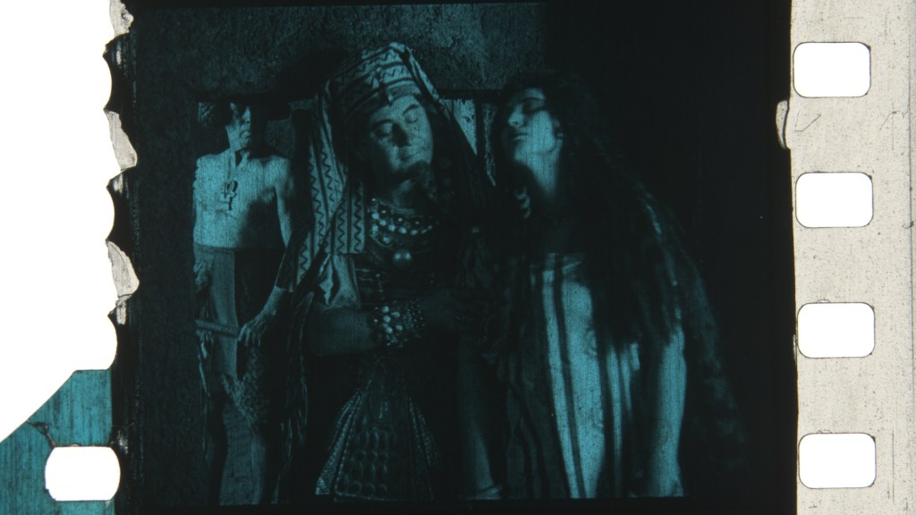 This tinted nitrate print of DAS WEIB DES PHARAO (GER 1922, Ernst Lubitsch)